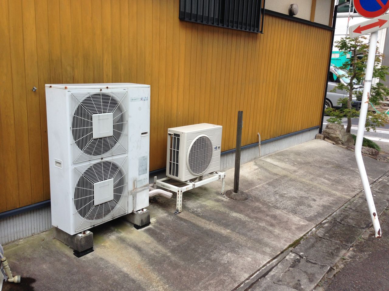 お店の建替え前から使用されていて古くなったエアコンで調子もわるいため、取替えを決められました。